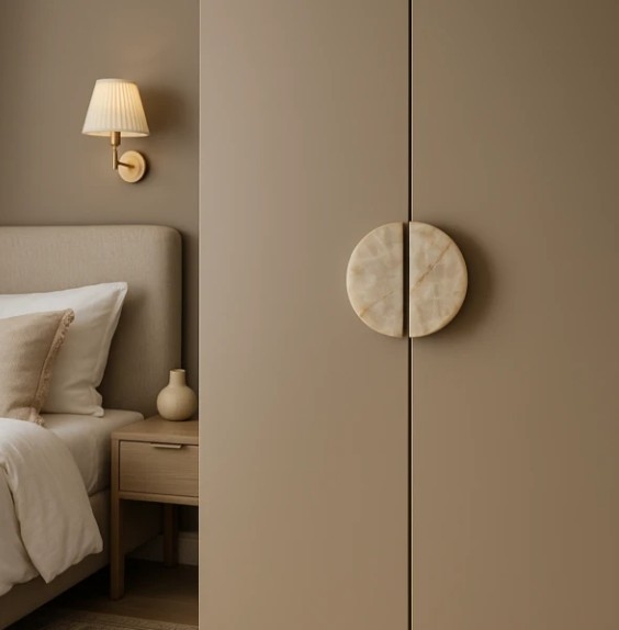 Taj Mahal Circle-møbelhåndtaket i kvartsitt kombinerer eksepsjonelt design med praktiske egenskaper som vil forvandle utseendet til møblene dine. Håndtaket er laget av to perfekt matchede halvdeler av en utskåret sirkel, og samsvarer med moderne interiørdesigntrender samtidig som det tilbyr en klassisk form med et snev av luksus.