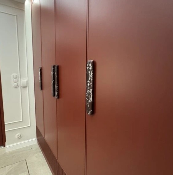 Luksuriøst Calacatta Viola Slim L møbelhåndtak laget av italiensk marmor. Elegant design, unik åring og håndlaget. Håndlaget etter bestilling. Leveringstid 4-8 uker.