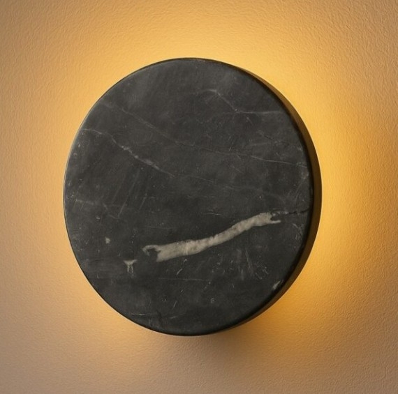 Materiale: Negresco kvartsitt (Brasil) Tykkelse på steinflate: 1 cm Tekstur: matt, børstet, naturlig åring Avstand til vegg: ca. 4 cm Montering: veggmontert Lysfarge: varmhvit (2700–3500 K) Lyskilde: LED Tilgjengelige diametre: 16 cm, 20 cm, 25 cm.