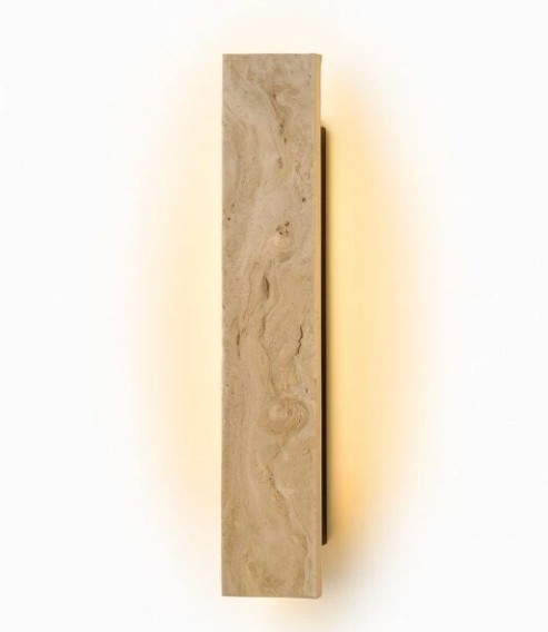 Materiale: Naturlig travertin Tykkelse på steinflate: 1 cm Tekstur: Matt, med naturlige årer Avstand til vegg: ca. 4 cm Montering: Veggmontert Lysfarge: Varmhvit (2700–3500 K) Lyskilde: LED Mål: 5 × 40,5 cm / 5 × 60 cm / 5 × 80 cm (tilgjengelig ved bestilling).
