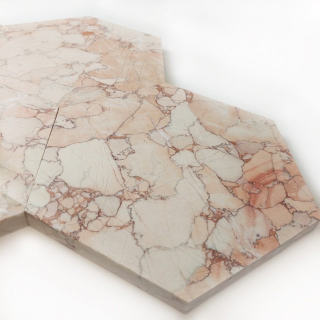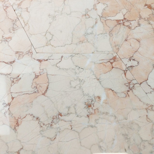 Sekskantede Sakura rosa marmorfliser i størrelse 25/29/2 cm, polert overflate