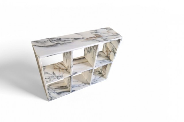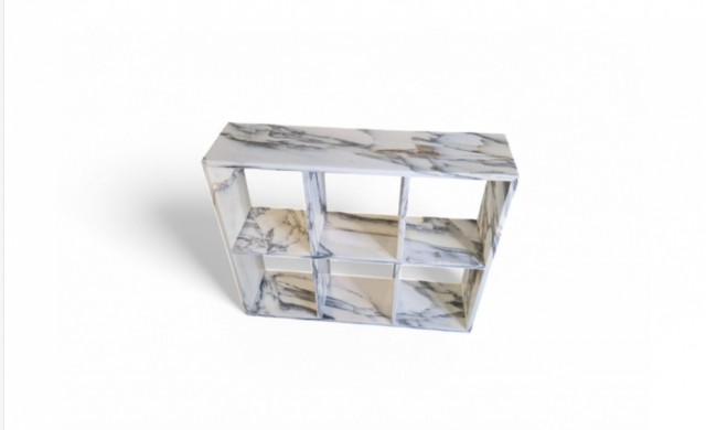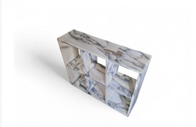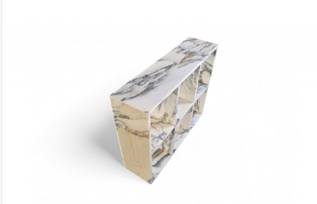 Vi presenter en marmorhylle i den moderne eleganse design. Hylle har marmorplater mellom med rommet før bøker, interiør detaljer som vaser, figurer, små belysning ogv. Laget av utmerket italiensk marmur Arabescato Corchia i melk hvit, beige og grå toner som skaper eleganse og harmoni og en følelse av større romlighet.